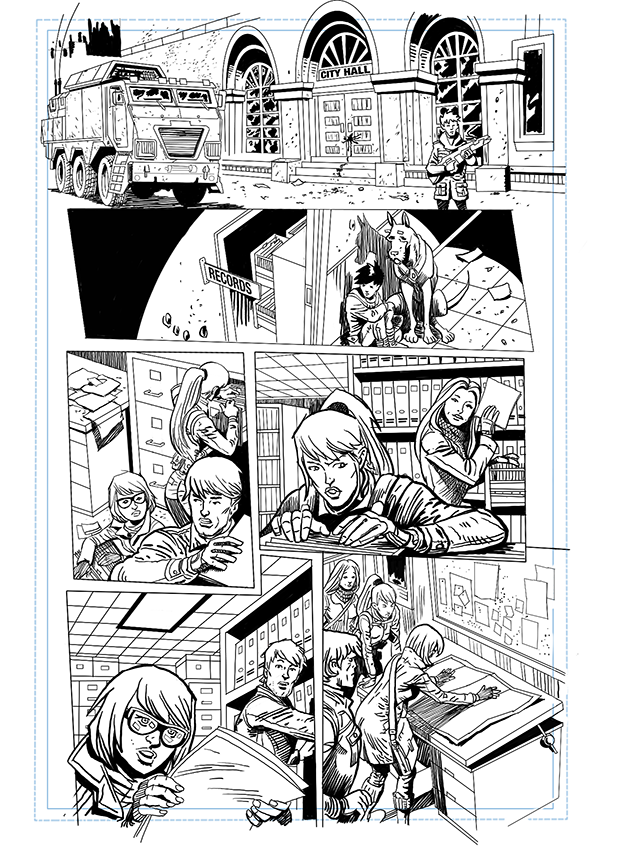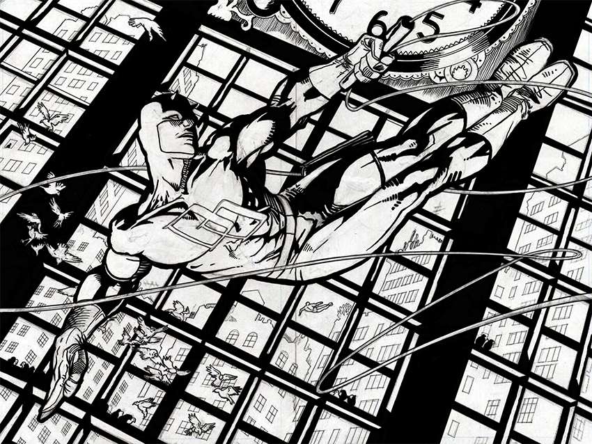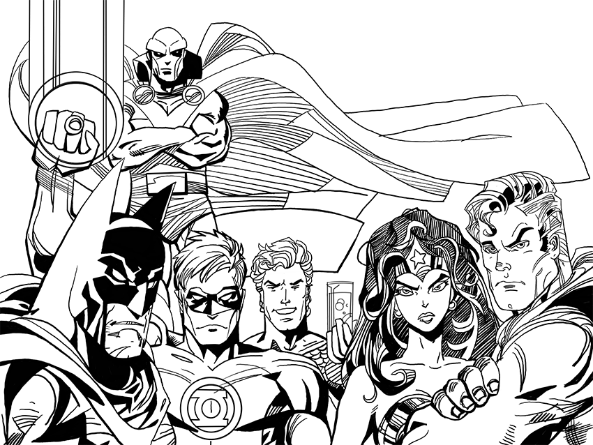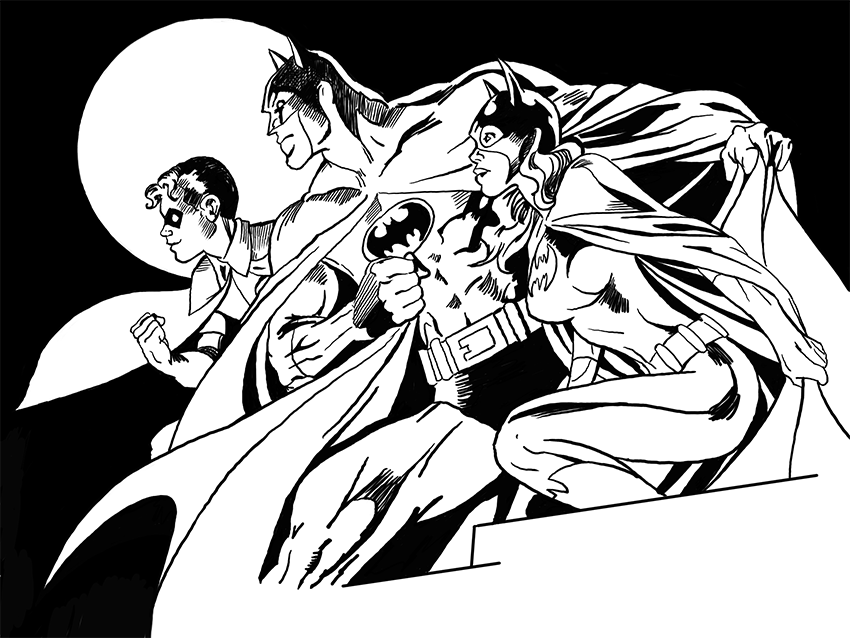 Batman, Robin and BatgirlDigital pen and ink drawing